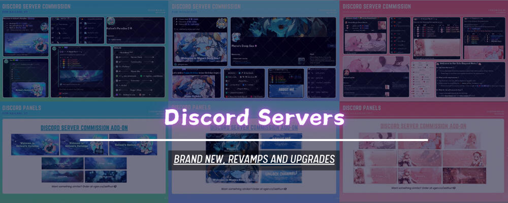 ✦┊ COMMUNITY SERVER: This includes servers that relate to any type of content creator or fandom communities, such as; Artists, VTubers, Streamer, Anime, Gamers etc.✦┊ BUSINESS SERVER: This includes servers that refers to; Commissions, Company, Application, Website or Event with a professional setting with users, clients or event-goers such as; Social Platforms, Conventions / Expos, etc.‣ Please provide neat visual references & descriptions.